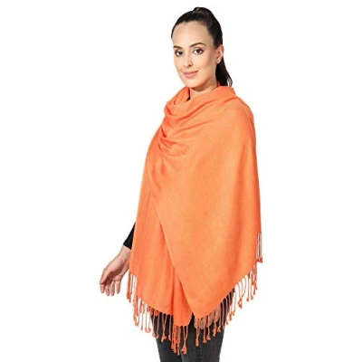 World of Shawls Pashmina Style All Seasons Handcrafted Wrap Shawl Stole Scarf (Sunset Orange)