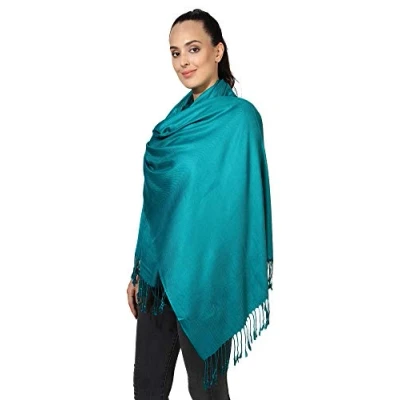 World of Shawls Pashmina Style All Seasons Handcrafted Wrap Shawl Stole Scarf (Teal)