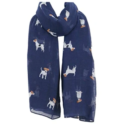 World of Shawls Pug Dog, Dachshund Dogs, Spaniel Jack Russell Print Scarf All Seasons Lovely Soft Wraps Shawl Scarves (Jack Dog Navy)