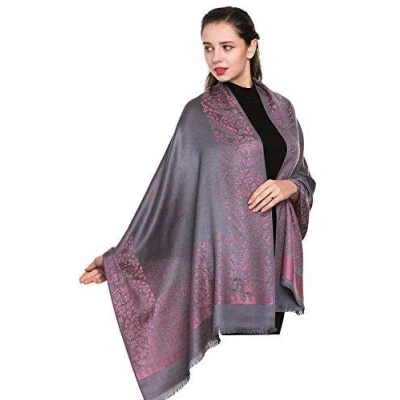 World of Shawls Reversible/Two Sided Print Self Embossed Pashmina Feel Wrap Scarf Stole Scarves Shawl (Silver/Pink)