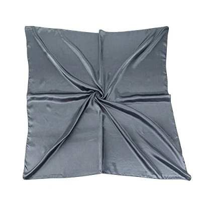 World of Shawls Satin Silk Square Plain Nautical Head Neck Scarf Wrap Large 90 cm X (Grey)