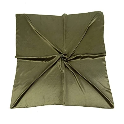 World of Shawls Satin Silk Square Plain Nautical Head Neck Scarf Wrap Large 90 cm X (Olive)