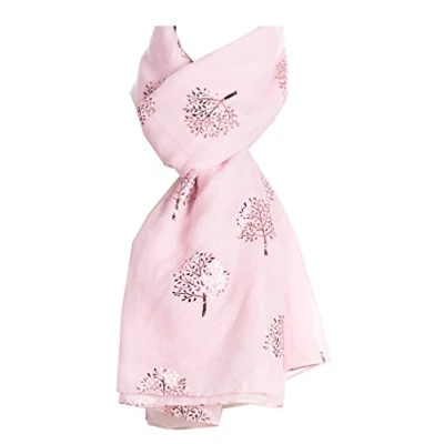 World of Shawls Silver Foil Mulberry Tree Print Fashion Scarf (Baby Pink With Rose Gold Tree)