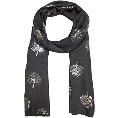 World of Shawls Silver Foil Mulberry Tree Print Fashion Scarf (Grey With Tree)