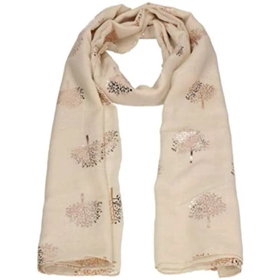 World of Shawls Silver Foil Mulberry Tree Print Fashion Scarf (Ivory Cream)