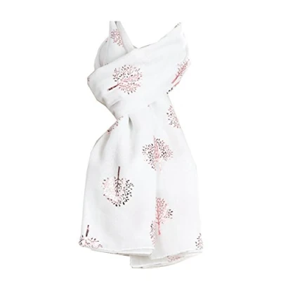 World of Shawls Silver Foil Mulberry Tree Print Fashion Scarf (Ivory Cream With Pink Tree)