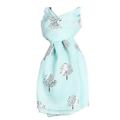 World of Shawls Silver Foil Mulberry Tree Print Fashion Scarf (Mint With Pink Tree)