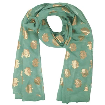 World of Shawls Silver Foil Mulberry Tree Print Fashion Scarf (Sage With Gold Tree)