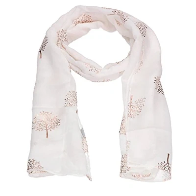 World of Shawls Silver Foil Mulberry Tree Print Fashion Scarf (White With Tree)