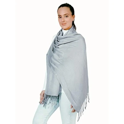 World of Shawls Super Soft Pashmina Shawl Scarf Wrap (Pale Silver)