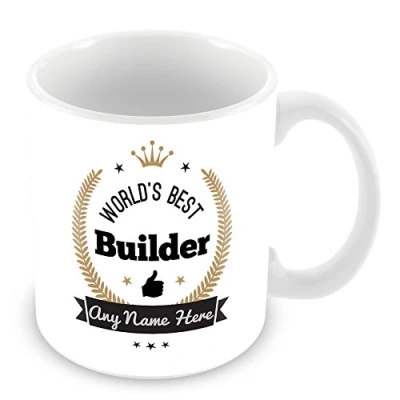 World's Best Builder Personalised Mug Gift Customise Cup with Name Gold