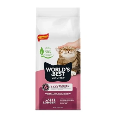 WORLD'S BEST Cat Litter Good Habits Attract Natural Plant Based Attractant Flushable Corn Unscented Odor Control Low Tracking & Lightweight 32lb Bag 2+ Months Supply*