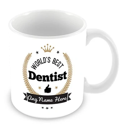 World's Best Dentist Personalised Mug Gift Customise Cup with Name Gold