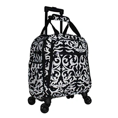 Lightweight polyester construction features two front zipper pockets and two side pockets The main compartment features compression straps, a padded section for a small laptop or tablet and middle section divider Push-button retractable handle system, Top carrying handles, and smooth spinner wheels Dimensions including wheels and handle: 18. 5" H x 14" L x 9. 5" W - 5. 5 lb Tablet/small laptop pocket Dimensions: 13" X 11" X 1. 5" (Fits Laptops up to 13")