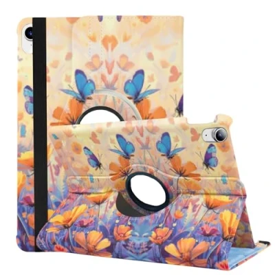 WorldBiz Case for iPad 10.2 Inch (8th Generation 2020/7th 2019), 360 Rotating Total Protection Cover With Folding Stand Function 10.2" (Butterfly)
