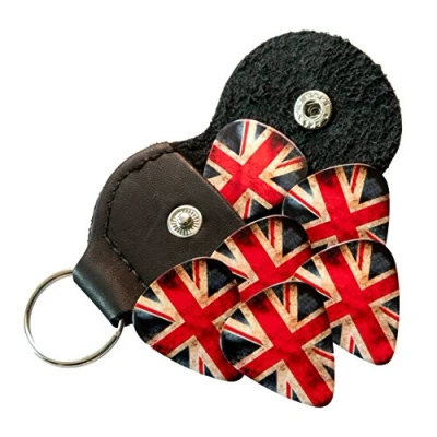 0.71mm Medium Gauge Guitar Picks Front - Worn Union Jack Rear - Worn Union Jack Includes pick holder keyring