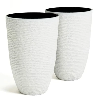 Worth Garden 2 Pack 21" H. White Tall Planters 14'' Dia Resin Large Round Flower Pots for Outdoor Plants Trees Imitation Stone Finish Plastic Indoor Front Porch 9 Gallon Decorative Container Patio