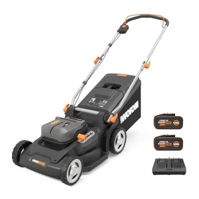 Powerful 40V Cordless Mowing – Covers Up to 1000m² – The Worx WG745E Lawn Mower delivers strong, consistent cutting performance with dual 20V 4.0Ah batteries, ideal for tackling large gardens with no cords or fuel. Brushless Motor 2.0 – 40% More Cutting Power & Longer Lifespan – Experience higher efficiency, extended runtime, and a 10x longer motor life compared to standard brushed motors, ensuring durability and peak performance. IntelliCut Technology – Adjusts Power Based on Grass Thickness – Smart IntelliCut technology automatically adapts the cutting speed to match different grass conditions, optimizing battery life and ensuring a precise, even cut. 6-Position Height Adjustment (25-80mm) & 41cm Cutting Deck – Easily switch between six cutting heights to suit different lawn conditions while the slim 41cm deck enables cutting close to fences, flower beds, and tight spaces. 2-in-1 Mulching & Collection with 50L Grass Bag – Choose between mulching for a healthier lawn or using the large 50L grass collection bag for a tidy finish. Fully collapsible handles allow for compact storage in vertical or horizontal positions., Weight: 39.68320716 pounds, Manufacturer: Worx