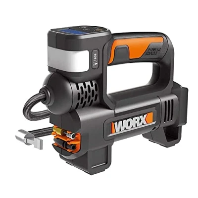 DIGITAL LED GAUGE: The Digital LED Gauge not only displays the precise PSI, but allows you to set it to the recommended PSI that the tyre or inflatable requires. HIGH PRESSURE INFLATION: WX092 provides up to 150 PSI, perfect for inflating tyres, sports balls and other small inflatables. POWERFUL LED LIGHT: WX092 equipped with the strong and powerful LED light to help users see what they are doing in the dark. Meanwhile, the SOS red and yellow emergency light can illuminate the working area. AUTOMATIC STOP: WX092 is able to automatically shut the power off when set pressure is reached to avoid over-inflating. ONBOARD STORAGE: 3ft. high-pressure hose provides extended reach - 3 adaptors stored onboard for tyres, sports equipment and air mattresses., Manufacturer: WORX
