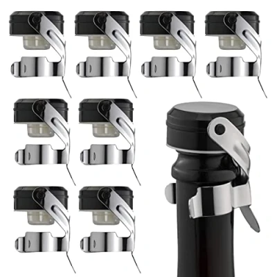 WOTOR Champagne&Wine Stopper Stainless Steel with Food Grade Silicone, Leak Proof and Bubble Retaining Saver Keeps Wine&Champagne Fresh,Suitable for All Standard Size Wine&Sparkling(8 Pack Silver)