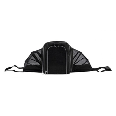 AmazonWouapy carry bag made for adventurer dogs Black nets for maximum ventilation Durable gray nylon fabric easily cleaned with a sponge Unfolded it offers an interesting volume while remaining secure Dimension of 45 x 25 x 28 cm