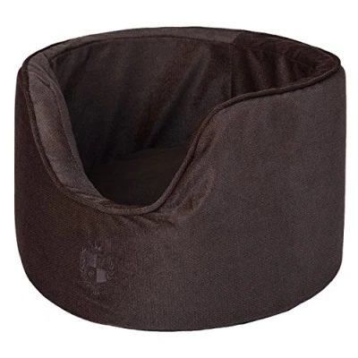 AmazonCat basket house comfortable and unique for a deep sleep Brown velvet fabric and 100% polyester fluffy inner Embroidered badge with a tone-on-tone thread on all items