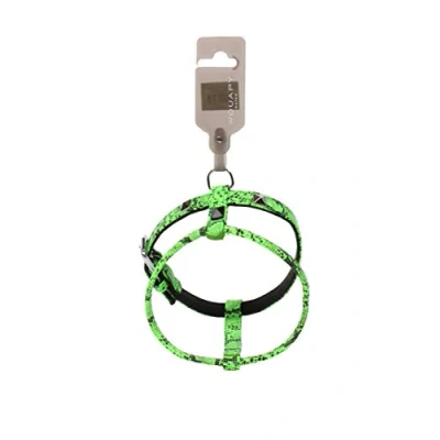 Python harness by Wouapy with Green python leatherette The python leatherette is sewn on a black leatherette strap soft and supple Square stud rivets, black and metal, adorn this harness Width of 15 mm Diameter of 40 cm