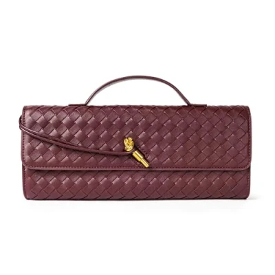Woven Purse for Women Evening Clutch Leather Handbags Crossbody Bag Formal bag, Wine