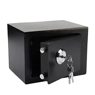 COMPLETE ACCESSORIES EASY TO INSTALL: The small safe can be secured to any surface with the supplied bolt accessories. The safe file box gives you easy access to your valuables with a mechanical priority feature. With 3 keys included, never worry about running out of battery, you can open anytime as long as you have the key, and never worry about hackers cracking your code. HIGH SECURITY: The safe for household bolts is made of strong solid steel wall structure, which is durable and not easy to open by external force. The surface is sprayed with environmental protection, wear-resistant, anti-rust, anti-corrosion and anti-fouling, and can successfully prevent scratches. Dual security steel door lock bolts keep your belongings safe. HOME SAFES: Lockable safes are small safes designed to protect important items like passports, birth certificates, cards, cash, and keys. Easy to hide in any corner of the house. You can mount it on the floor, wall or cabinet. WITH FIXING BOLTS: This steel safe can effectively protect valuables, with pre-drilled fixing bolts, which can be fixed on any surface provided, making the safe tightly connected with the fixed surface, not easy to separate, protecting your property. WIDE APPLICATION: The size of the safety box is about 23cm X 17cm X 17cm. Suitable for storing currency, documents, valuables, etc., suitable for residences, offices, hotels, etc. FIXING BOLTS: This steel safe can effectively protect valuables, with pre-drilled fixing bolts, which can be fixed on any surface provided, making the safe tightly connected with the fixed surface, not easy to separate, protecting your property.