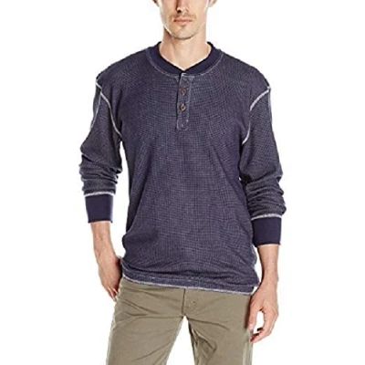 Wrangler Authentics Men's Long Sleeve Waffle Henley Shirt, Mood Indigo, XXL