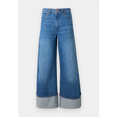 Wrangler Cuffed Trouser Wide Leg, Women's, Size: 28x32, Blue denim