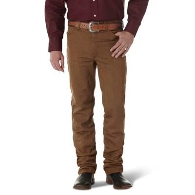SLIM FIT. Designed with a functional fit in mind, these jeans are made to stack over your favorite pair of boots. Constructed with a slim fit through the seat and thigh, this jean is made for both function and comfort for long days in the saddle. CLASSIC COWBOY JEAN. Made for authentic cowboys and worn by world champions, this cowboy cut jean is a tried and true classic. As the Official ProRodeo Competition jean, this western denim essential will stay with you for years to come and maintain that timeless cowboy style. DURABLE MATERIALS. It's no question that this classic can withstand wear and tear. Made with durable heavyweight cotton and felled seams to prevent chafing, this original fit jean was made to last -- no matter the task. COMFORTABLE WEAR. Whether you're out on the ranch or working in the garage, you need a durable jean that keeps you comfortable throughout the day. Made from 100% cotton, this jean provides comfort and breathability for your day ahead. FIVE POCKET STYLING. This cowboy cut jean is constructed with an authentic five pocket styling: (1) watch pocket, (2) front scoop pockets, (3) back patch pockets. Finished with copper rivets for added long-lasting durability.