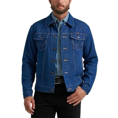 WESTERN STYLE. Finished with western "W" deco stitching and a heavy-duty brass button closure, this elevated classic will give you the look you love without compromising comfort and style DURABLE MATERIALS. Crafted from 100% cotton, this unlined western denim jacket is built to last, Extra-durable construction means this jacket will hold up for years to come UPDATE YOUR LOOK. Available in multiple color options, this is the perfect lightweight jacket to wear when going out to lunch with friends, or at a backyard barbeque - easy to dress up or dress down CLASSIC FIT. The same fit as a classic denim jacket with a touch of western styling, Made with a relaxed yet tailored fit for comfort, this denim classic is a wardrobe essential ADDED STORAGE. Constructed with (2) button flap closure pockets, this denim jacket has storage for your basic necessities