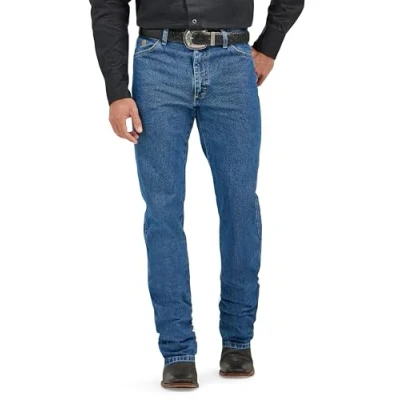 ORIGINAL FIT. Designed with a functional fit in mind, these jeans are made to stack over your favorite pair of boots. Constructed with a comfortable fit In the waist, seat and thigh, this jean is made for both function and comfort. A COUNTRY CLASSIC. Wrangler’s classic fits enhanced by the King of Country. These George Strait jeans are modeled after Wrangler’s authentic styles with embellishments by George himself. DURABLE MATERIALS. It's no question that this classic can withstand wear and tear. Built with durable heavyweight cotton denim and felled seams, this jean was made to last -- no matter the task. COMFORTABLE WEAR. Whether you're out to lunch or working in the yard, you need a jean that keeps you comfortable throughout the day. Made from 100% cotton, this jean provides comfort and breathability for your day ahead. FIVE POCKET STYLING. This cowboy cut jean is constructed with an authentic five pocket styling: (1) watch pocket, (2) front scoop pockets, (3) back patch pockets. Finished with copper rivets for added long-lasting durability.