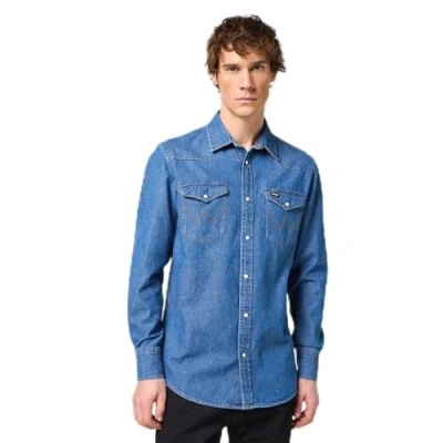 Wrangler Men's ls Western Shirt, Barrel Blue, M