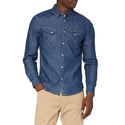 Wrangler Men's Ls Western Shirt Shirt, Dark Stone, L