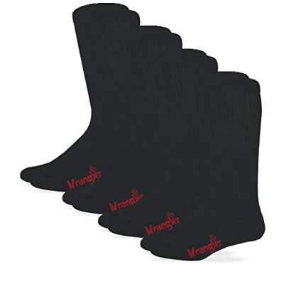 Wrangler Men's Riggs Non Binding Boot Work Cotton Cushion Smooth Toe Socks 4 Pair Pack Black Large, L