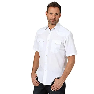 Wrangler Men's Sport Western Basic Two Pocket Short Sleeve Snap Shirt, White, XL