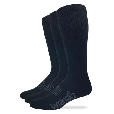 Wrangler Men's Western Boot Socks (Three Pairs), Black, X Large (Pack of 3)