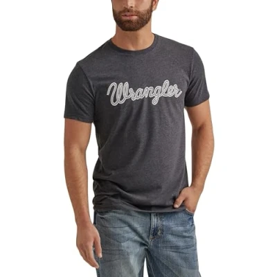 CASUAL STYLE. Nothing goes better with your favorite pair of jeans than a classic crewneck tee. Crafted from a comfortable cotton blend and featuring the Wrangler logo for an extra touch of heritage, our men's western graphic tee is made for every day. REGULAR FIT. Not too tight yet not too loose, this regular fit t-shirt leaves room for both comfort and style in your day ahead. ALL DAY COMFORT. Made from a soft cotton blend, this shirt provides lasting comfort that's easy to wear all year round. WRANGLER CLASSIC. Complete with signature Wrangler graphics and designs, this short sleeve shirt will quickly become a staple in your closet rotation. VERSATILE TEE. A classic tee with premium materials and timeless designs, this shirt looks great layered under a flannel or with a pair of jeans.