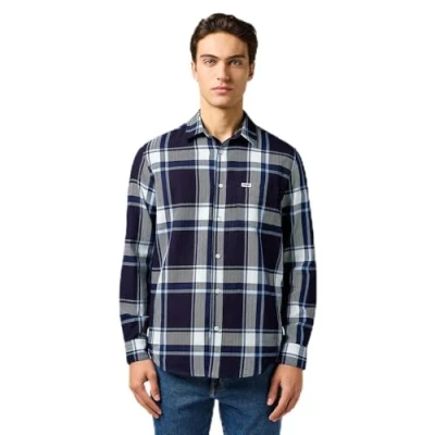 Wrangler Men's 1 Pkt Shirt, Large Indigo Plaid, XL