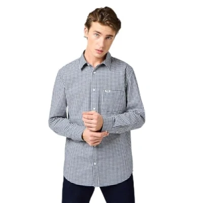 Wrangler Men's 1 Pkt Shirt, Navy Gingham, M