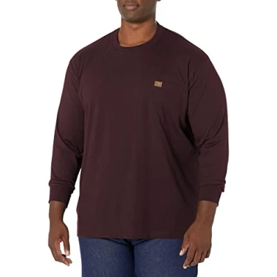 Wrangler Riggs Workwear Men's Long Sleeve Pocket T Shirt, Burgundy, Large