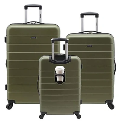 Wrangler Smart Luggage Set with Cup Holder and USB Port, Olive Green, 3 Piece Set, Port