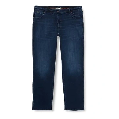 Comfortable Wrangler jeans that sit at the waist, With a regular fit through the thigh and an authentic straight leg, Modern jeans with classic elegance, A casual essential for all situations The Texas Fit has an authentic straight leg style, Flattering and reliable these men's jeans are perfect for everyday wear, A timeless addition to any wardrobe Authentic jeans that sit at the waist and include classic details: 5 Trouser pockets, 7 Belt loops, Zip fly, Iconic Wrangler stitching and logo patch Wrangler jeans for men are made with comfortable cotton and are machine washable on the cold setting, Wash inside out and dry separately to avoid colour transfer Contents: 1x Wrangler Men's Jeans, Model number: 112341387, Length: 46, Width: 34, Material: 91% cotton 7% elastomultiester 2% elastane, Stretch: Medium Stretch, Colour: Arm Strong (Blue)