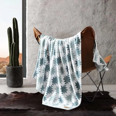 Wrangler Throw Blanket, Soft Plush Fleece Bedding, Western Decor for Bed or Couch (Canyon Ikat Blue, 50" x 60")