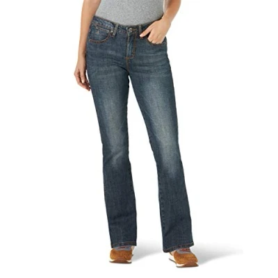 Wrangler Women's Aura Instantly Slimming Mid Rise Boot Cut Jean, Autumn Gold, 8 Short