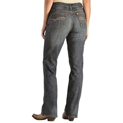 Wrangler Women's Aura Instantly Slimming Mid Rise Boot Cut Jean Blue 8