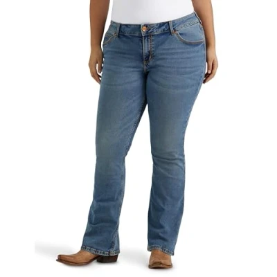 Wrangler Women's Plus Retro Mae Mid Rise Stretch Boot Cut Jean, Medium Blue, 18 32
