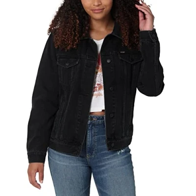 Wrangler Women's Relaxed Fit Memory Maker Jean Jacket, Carbon, L